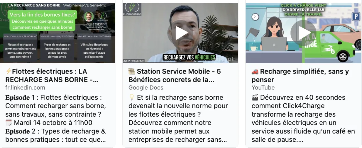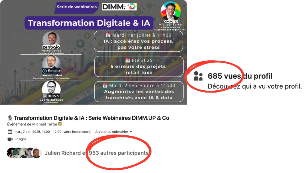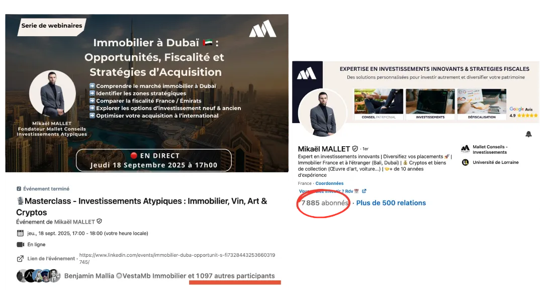 • Ces contenus sont utilisés dans vos séquences de messages privés et vos prises de parole mensuelles (ex. webinaires), afin de renforcer votre crédibilité et générer des rendez-vous qualifiés