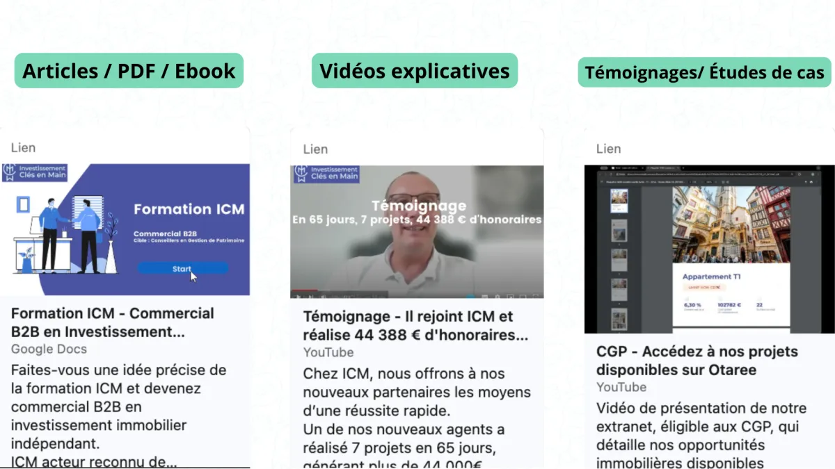 • Vidéos, études de cas, PDF… pour démontrer votre expertise et renforcer votre crédibilité